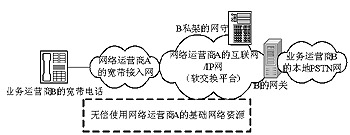 其次,目前國內VoIP的運作模式,在VoIP運作模式中涉及到網絡運營商和業(yè)務運營商。我們用下面的例子來具體說明該問題。假定在某地,在其他運營商服務區(qū)域內沒有本地網資源的業(yè)務運營商B利用該服務區(qū)內擁有本地網資源和互聯網資源的網絡運營商A的ADSL寬帶接入到A的公眾互聯網上,在該網上,業(yè)務運營商B通過非法架設網守(計費控制系統(tǒng))及網關等設備開展VoIP業(yè)務,然后在自己服務區(qū)域內的PSTN網絡上進行“落地”,這樣則直接旁路了網絡運營商A的電話語音業(yè)務,而網絡運營商A自己建設維護的互聯網則沒有得到任何補償,于是只能采用技術跟蹤然后封堵的方式來遏止業(yè)務運營商B的VoIP業(yè)務開展。在該情況下,業(yè)務運營商B的VoIP業(yè)務很難做大,而網絡運營商A也可以明正言順的進行封堵政策。最終受到損害的將會是整個VoIP產業(yè)(圖1)。因此,從成本和公平角度來說,必須對建設維護互聯網的網絡運營商A進行一定的補償,使其有足夠的激勵去讓VoIP業(yè)務提供商利用其網絡開展業(yè)務。也就是說必須建立VoIP承載網運營商和VoIP業(yè)務運營商之間的結算體系!