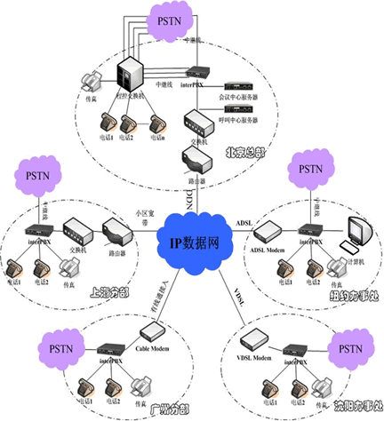 北京正有公司為企業(yè)專門設(shè)計了一套interPBX解決方案,利用企業(yè)自有的數(shù)據(jù)網(wǎng)構(gòu)建覆蓋整個企業(yè)的VPTN網(wǎng)絡(luò)電話系統(tǒng),該套系統(tǒng)具備與傳統(tǒng)PSTN電話網(wǎng)絡(luò)實現(xiàn)無縫連接的能力,在不影響工作效率的前提下達(dá)到降低通話費(fèi)用的目的,同時可以完成企業(yè)所需要的其它增值服務(wù)功能,如電話會議、呼叫中心等。