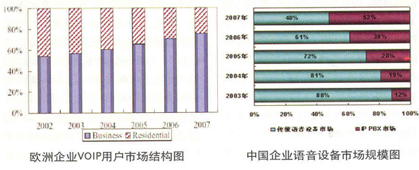 PBX設(shè)備市場(chǎng)規(guī)模在2007年將一舉超過傳統(tǒng)的PBX市場(chǎng),IP通信的大規(guī)模部署和對(duì)傳統(tǒng)語音系統(tǒng)的替代已經(jīng)不可動(dòng)搖。