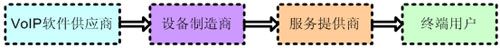 如圖2所示,VoIP產(chǎn)業(yè)價值鏈的各個環(huán)節(jié)包括軟件供應商、設備制造商、系統(tǒng)集成商、服務提供商及終端用戶。