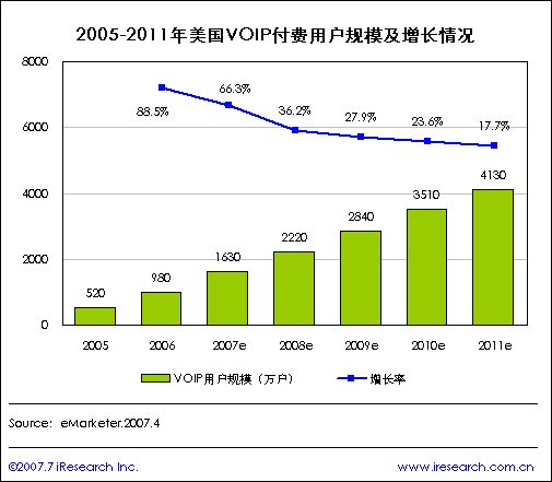 2011年美國(guó)VOIP付費(fèi)用戶規(guī)模將達(dá)4130萬戶