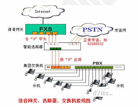 使用網(wǎng)關(guān)電話打國內(nèi)/國際其他普通公話或手機(jī),稱為“點(diǎn)對(duì)面模式”。在使用智能路由選線器以后,打出電話時(shí)自動(dòng)根據(jù)首位字頭,例如“0”,判斷選擇市話或者VOIP專線通話,--字頭有“0”,時(shí)自動(dòng)走VOIP網(wǎng)絡(luò)線路,字頭沒有“0”時(shí),選擇走通常的市話線路,完全不改變我們過去使用電話的習(xí)慣!