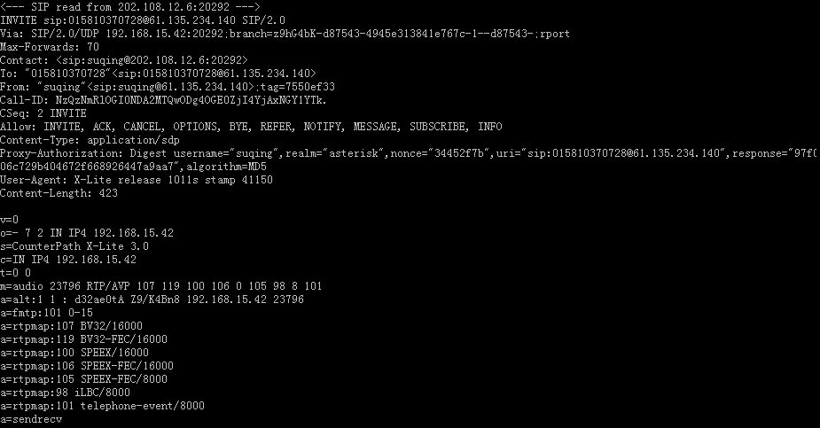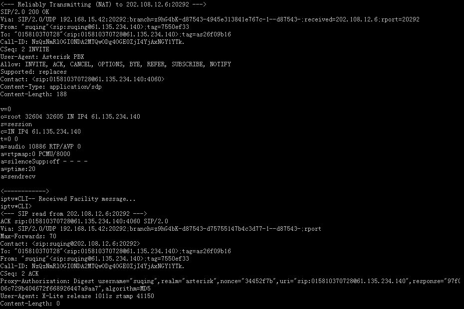Asterisk PBX 針對上面的分析情況,響應(yīng)X-Lite會話繼續(xù)下去: