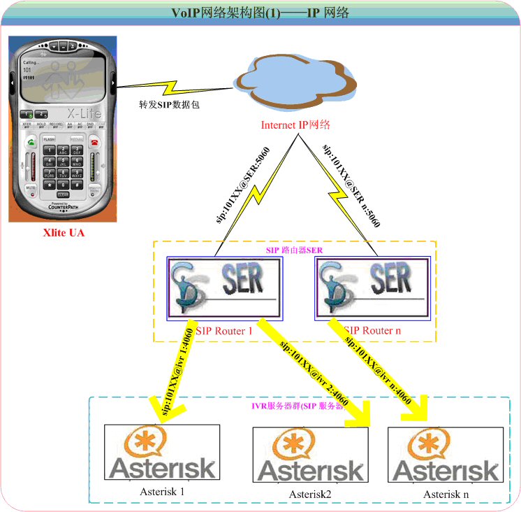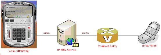 1.VoIP軟終端X-Lite,對應(yīng)圖4-1的PC PHONE:PC用戶使用SIP軟終端(目前只使SIP協(xié)議作為輸入信令)訪問IP-PBX服務(wù)器軟交換后臺,對普通座機或手機發(fā)起呼叫,實現(xiàn)PC2Phone的通訊。