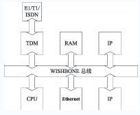 TDM控制模塊是VoIP網關系統設計中的重要部分,是連接來自PSTN(Public Switched TelephoneNetwork)串行的TDM數據格式和并行的Wishbone數據格式的橋梁,實現兩邊數據跨時鐘域無丟失的轉換。為滿足高速數據轉換的要求,采用了Wishbone總線,將多個IP核集成為VoIP網關系統!
