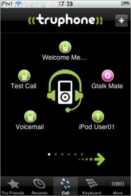 互聯(lián)網(wǎng)電話公司Truphone公司最近在App Store放出了其免費(fèi)的音樂程序,這款程序可以讓iPod Touch的用戶互相之間通過WiFi連接撥打或接聽VoIP電話,并可使用Google Talk的短信服務(wù)。