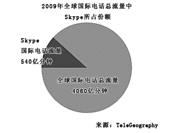 盡管全球的國際長途電話呼叫量增長在減緩,但是Skype的業(yè)務(wù)量卻急劇上升。2008年,Skype網(wǎng)內(nèi)用戶間的國際長途呼叫量的增幅高達51%,2009年這一增幅達到63%,達到540億分鐘。如今,Skype已經(jīng)成為全球最大的跨境通話服務(wù)提供商。