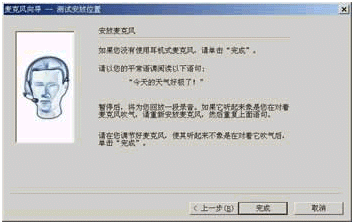 (2)現(xiàn)在你看到的是"安放麥克風(fēng)"對話框(如圖5所示),如果你沒有使用頭戴式麥克風(fēng),那么就可以點(diǎn)擊"完成"按鈕。
