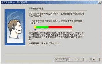 (1)點(diǎn)擊"下一步"按鈕后,系統(tǒng)將首先幫助你調(diào)整麥克風(fēng)(如圖4所示)