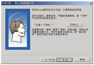 點(diǎn)擊"下一步"按鈕后,就會看到如圖11所示的對話框,請根據(jù)窗口中的提示對話信息朗讀,如果朗讀正確,對話信息將會反白顯示,如果你朗讀錯誤,請重新進(jìn)行。