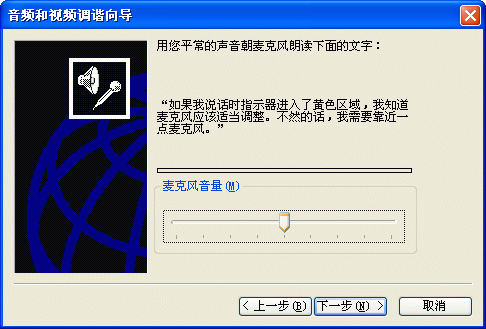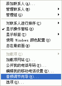 同樣,首先你應(yīng)該在MSN Messenger中調(diào)節(jié)你的音頻和視頻設(shè)備。選擇工具->音頻調(diào)節(jié)向?qū)?圖8)就會彈出“音頻和視頻調(diào)諧向?qū)А钡拇翱?圖9),請根據(jù)這個向?qū)У奶崾荆徊揭徊竭M行測試和調(diào)節(jié)。