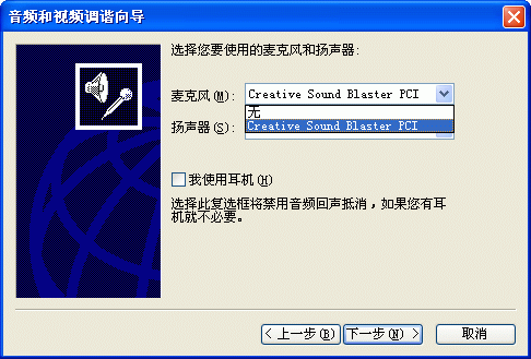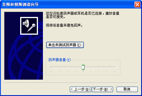 選擇幫助->音頻設(shè)備配置向?qū)?圖2),會彈出“音頻設(shè)備配置向?qū)А贝翱?圖3),這個向?qū)䦷椭銓P聲器、麥克風、回音、網(wǎng)絡(luò)連接等項目進行標準的測試和設(shè)置。