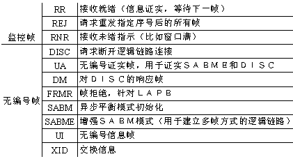分兩類,一為監(jiān)督幀用于有序幀的證實(shí)和流控;一為無(wú)編號(hào)幀(無(wú)需證實(shí))。