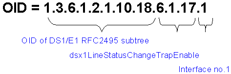 下圖13給出了對(duì)一個(gè)DS1線路狀態(tài)進(jìn)行查詢的OID設(shè)置例子。