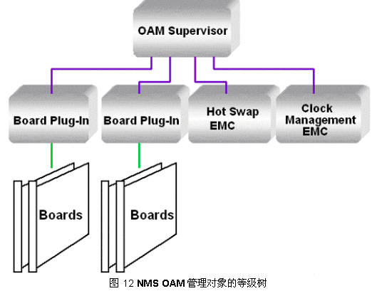 NMS公司的OAM組件是作為Natural Access服務(wù)提供給用戶的,用以管理一個機架甚至多個機架上的NMS板卡和軟件模塊。OAM即操作(Operation)、管理(Administration)、維護(Maintenance),通過OAM可以創(chuàng)建、刪除、查詢OAM下的各組件的配置,啟動、終止或測試組件的運行,以及接收從組件發(fā)出的告警等事件通知。