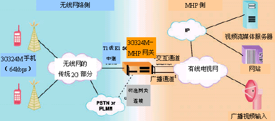 圖3 著重的是MHP-3G324M網(wǎng)關(guān)的組成部分。它支持網(wǎng)絡(luò)管理功能、用戶管理功能,話單會(huì)通過(guò)附加的鏈路送出,通常會(huì)是通過(guò)IP網(wǎng)絡(luò)送出,在這里沒(méi)有畫(huà)出來(lái)。實(shí)現(xiàn)標(biāo)準(zhǔn)MHP機(jī)頂盒功能的組成圖,圖示于圖3的右邊,支持標(biāo)準(zhǔn)無(wú)線視頻呼叫功能的組成圖圖示于左邊。