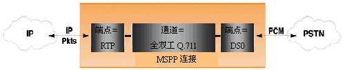MSPP通道可以是全雙工語音編碼器、傳真轉發(fā)編碼器、或者是各種單工通道。在一個普通VoIP網(wǎng)關應用中,一個端點就是一個和PSTN連接的DS0,PSTN連接最常見的是CG6000系列平臺上的T1或E1接口,也可能是T3接口。其它連接是一個通過以太網(wǎng)接口連接到廣域包網(wǎng)絡(WAN)的RTP話音包端口。通過指定端點和通道類型,很容易開發(fā)出各種包電話應用。