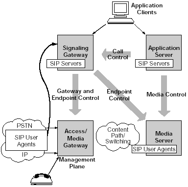 許多語(yǔ)音服務(wù)都是由媒體服務(wù)器提供的。例如,一個(gè)客戶給某個(gè)電子商務(wù)網(wǎng)站打電話會(huì)被接到一個(gè)自動(dòng)語(yǔ)音應(yīng)答(IVR)上或者自動(dòng)總機(jī)上。這些應(yīng)用使用了語(yǔ)音,語(yǔ)音識(shí)別和音頻等功能,都是運(yùn)行在媒體服務(wù)器上的。在下一代網(wǎng)絡(luò)的實(shí)現(xiàn)中,媒體服務(wù)器就象是另一個(gè)電話(或者說(shuō),一個(gè)SIP的終端)。因此,他們可以享受和用戶一樣的SIP的優(yōu)點(diǎn)。