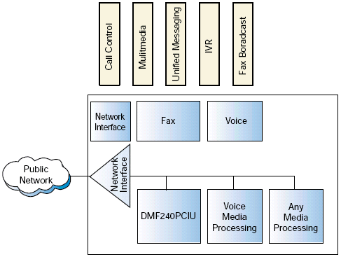 與其它網(wǎng)絡(luò)接口和媒體處理板卡結(jié)合起來, DM/F240-PCIU 和 DM/F300-PCIU定位為提供面向傳真服務器和統(tǒng)一消息市場段的產(chǎn)品.
