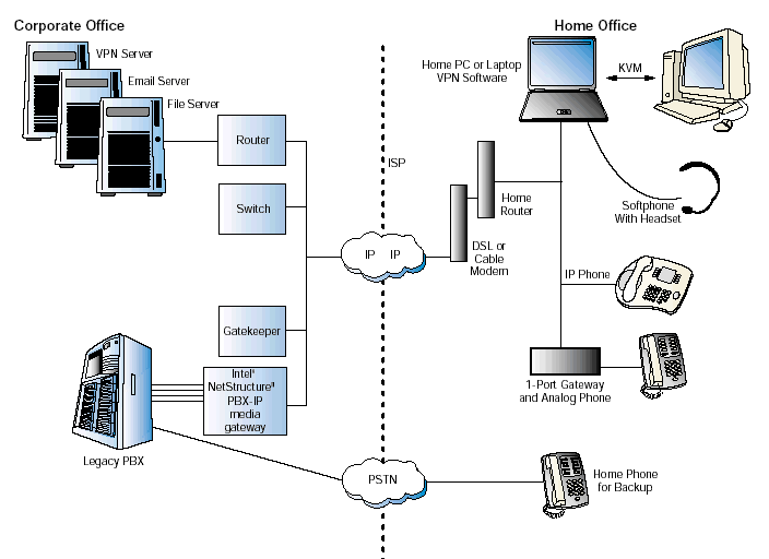 要想將IP電話連接到公司的PBX中,--或者要集成PBX的網(wǎng)絡(luò)主機(jī)應(yīng)用或擴(kuò)展PBX到家庭辦公室--遠(yuǎn)程辦公的解決方案需要: