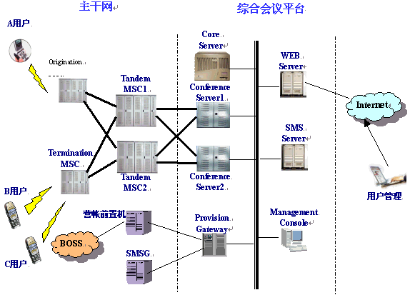 概述 。。今年來,隨著電話會議技術(shù)的不斷成熟,基于計算機平臺的會議型業(yè)務(wù)應(yīng)用越來越活躍,其中電話會議系統(tǒng)、QQ聊天系統(tǒng)以及BGM便是主要熱門應(yīng)用。 。。交互式電話會議系統(tǒng)是一個真正由用戶自己管理的智能型交互式電話會議系統(tǒng),是目前國際上流行的一種召開會議的新形式?蛻衾盟梢噪S時隨地召開本市、國內(nèi)或國際的電話會議,人們無論身在何處,只需撥打一個事先約定的電話會議號碼和密碼,即可參加會議,并且能自由組會,同時發(fā)言,自由交談?梢酝瑫r招開數(shù)十方,適用于商務(wù)研討、緊急討論會、信息匯總會、親友聚會等各種各樣的會議。