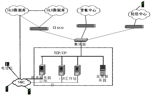 。。如圖所示,Miscall平臺(tái)主要包括三個(gè)部分:信令網(wǎng)關(guān)服務(wù)器、IVR工作站及應(yīng)用服務(wù)器。