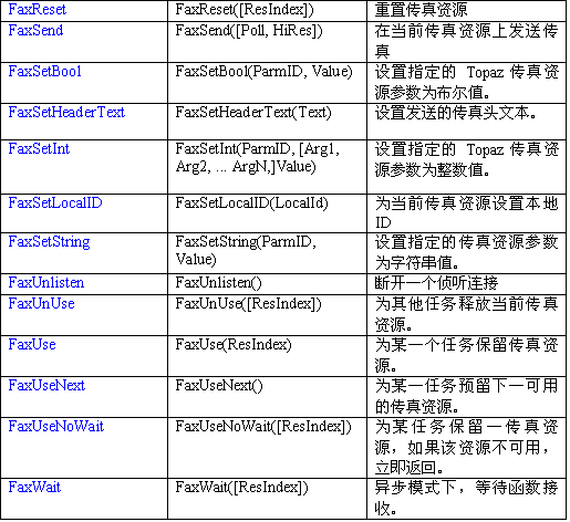 傳真資源由傳真函數管理,