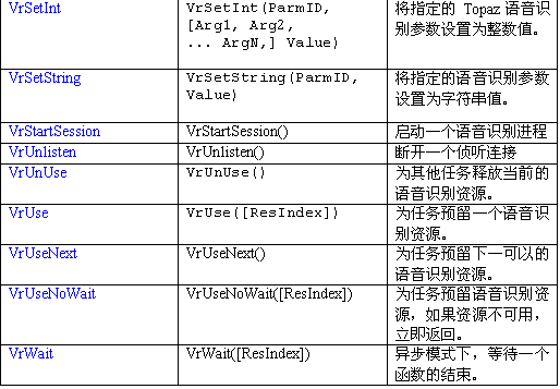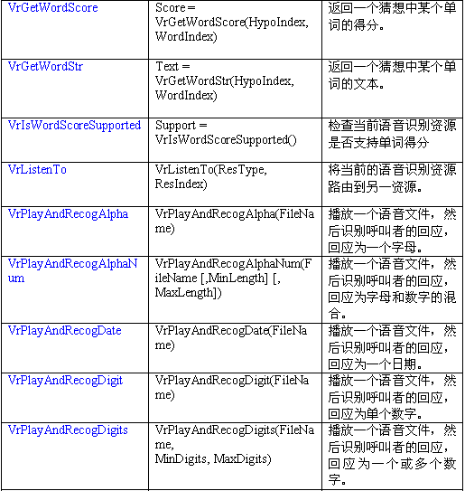 語音識別資源把呼叫者的語音轉變?yōu)槲谋咀址。一個VR資源可以對一個語音流數據(來自一中繼或會議資源)進行識別。