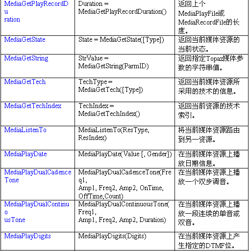 控制媒體資源的函數如下: