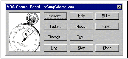 VOS啟動時,用戶界面是一個稱為VOS控制面板(VOS Control Panel)的對話框。VOS對話框如下所示: