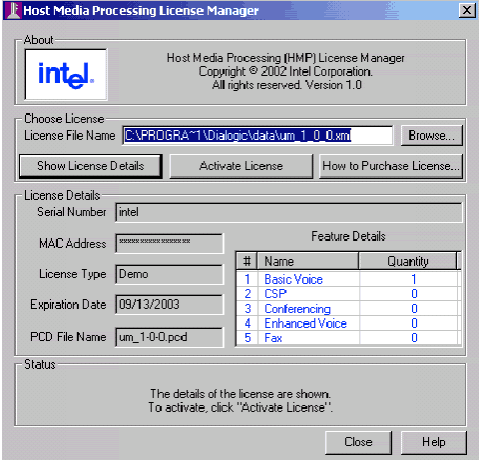 當你購買并激活一個永久的HMP許可證后,啟動Dialogic® Dialogic®配置管理器
