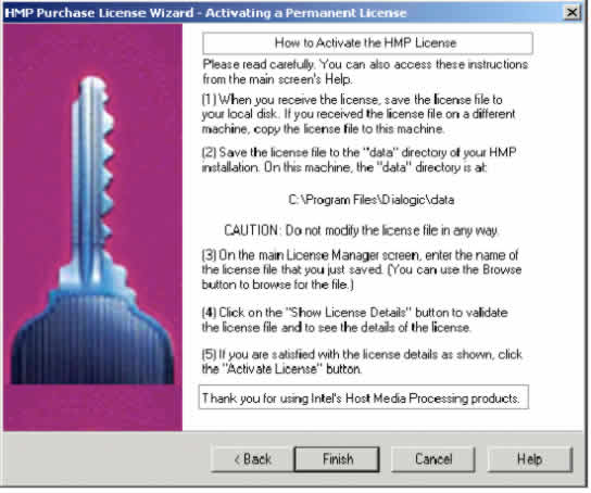 1. 從廠商處獲得許可證后,將許可證文件保存到HMP所在計算機上的%DLFWLPATH% 目錄中。這是HMP安裝的"數(shù)據(jù)"目錄。HMP購買許可證向?qū)У牡谌齻界面將指明你機器上的路徑(例如圖19)。另一種找出%DLFWLPATH%