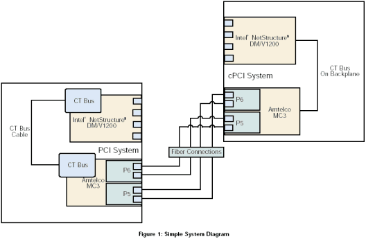 基于Windows操作系統(tǒng)的Dialogic® 系統(tǒng)5.1.1發(fā)布版本特征包1軟件允許通過(guò)CT總線多個(gè)板卡共享資源。然而,Dialogic卻沒(méi)有提供跨服務(wù)器共享CT總線的機(jī)制,實(shí)現(xiàn)這種功能需要一種可以跨服務(wù)器進(jìn)行CT總線連接。其中一個(gè)可行的解決方案是使用Amtelco