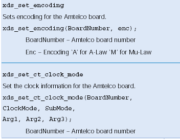 使用xds_mc3_connect、xds_mc3_listen、and xds_h100_listen函數(shù)分配由Amtelco卡使用的時(shí)隙,xds_mc3_connect在光纖環(huán)路和CT總線之間創(chuàng)建一個(gè)全雙工連接,所有的參數(shù)都可以在Amtelco板上得到。CT總線傳輸?shù)膮?shù)是Amtelco卡將要傳給CT總線CT的。