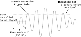 - 預(yù)緩沖(Pre-Speech Buffer) - 進(jìn)入的語音數(shù)據(jù)被存在一個250毫秒的緩沖區(qū)里。 當(dāng)檢測到語音能量,這一部分儲存在緩沖區(qū)里的語音就會被轉(zhuǎn)發(fā)到語音識別資源來被處理。這種預(yù)緩沖的里包含的關(guān)鍵信息在高識別準(zhǔn)確率要求的時候是十分關(guān)鍵的。