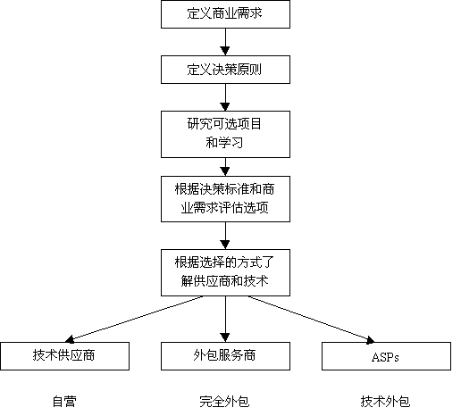 在確定規(guī)模和電子商務的影響之前,應該先花費些時間分析一下環(huán)境條件。圖2提供了一個框架結(jié)構(gòu),可用于確定實現(xiàn)電子商務支持最好的方式。記住,這只是確定你希望采取的步驟的第一步,下一步將選擇一個銷售商或供應商。